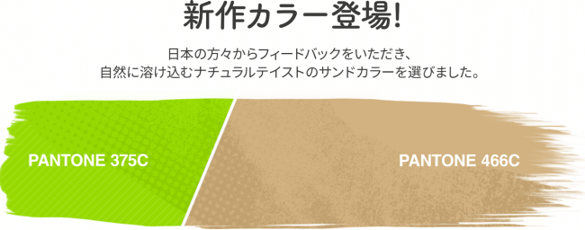 新作カラーは、ジェイクの故郷イギリスで、一番美しい夕日が見れるモアカムベイをイメージ、そして自然に溶け込むナチュラルテイストのサンドカラーを選び抜きました。