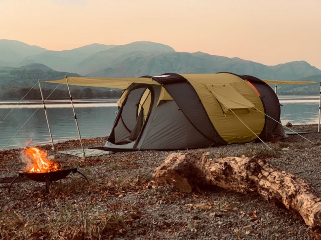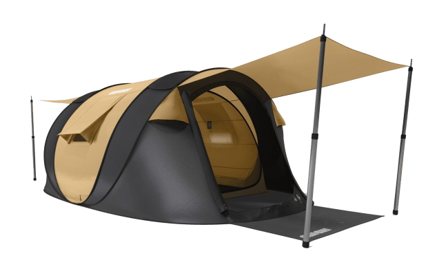 広々空間でアウトドアを楽しめる4人用テント、日本のアウトドアシーンでも人気のあるサンドカラーで登場!