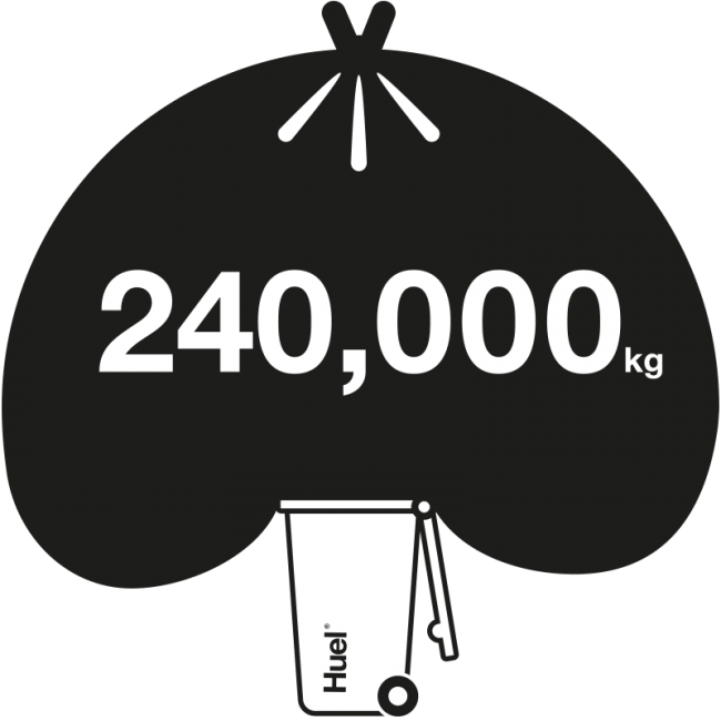 ※2:年間一人170㎏の廃棄物が発生し、そのうち19%が食品包装(32.3kg)です。また、プラスチック廃棄物の約41%が食品包装によるもので、一日2000kcalほどの食事をとった場合、年間一人13㎏のプラスチック廃棄物が発生する計算になります。Huelが販売した量と比較した場合(31,000年間分のお食事)、410トン以上のプラスチック廃棄物を生み出すことになります。これを、31,000年間分で販売したHuelの中に含まれるプラスチック量167トンと比べると、243トン以上を削減したことになります。