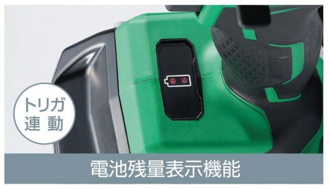 トリガ連動式の電池残量表示機能は、ボタン押すだけでバッテリー充電切れを確認でき、作業の中断を軽減します。