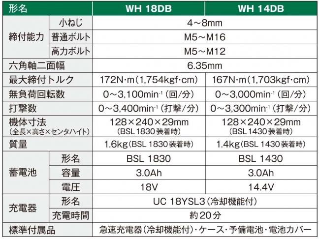 「コードレスインパクトドライバ」(WH18DB形(左)/WH14DB形(右))