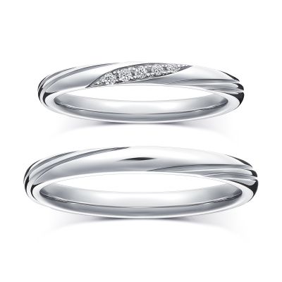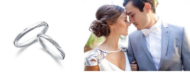 『 レンブラント光線』や『天使のはしご』と呼ばれる、雲の切れ間から差し込む太陽光の柱が地上へ降り注いで見える現象からインスピレーションを受け、ふたりの新たな人生の道筋を照らし、永遠の愛が続くようにと願いを込めています。リングの表面に施した4本のラインが天空より光が差し込む様子を表現しています。