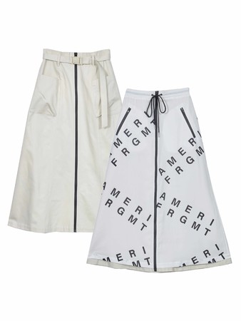 ファスナーを開けて裏返すと藤原ヒロシ氏が手がけた、「AMERI FRGMT」のテキスタイルがプリントされたスカートに。