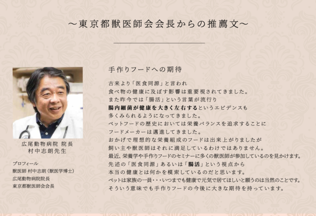 東京都獣医師会長(広尾動物病院院長:村中志郎先生)からの推薦文も頂戴しており安心してご利用いただけます。