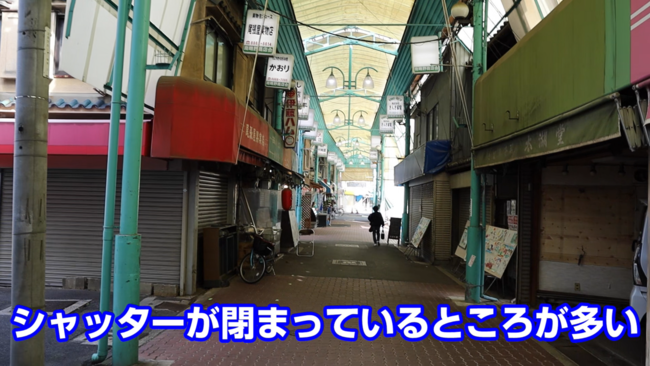 シャッターが閉まっている店舗が散見され、半分程度のお店しか運営していない状況。