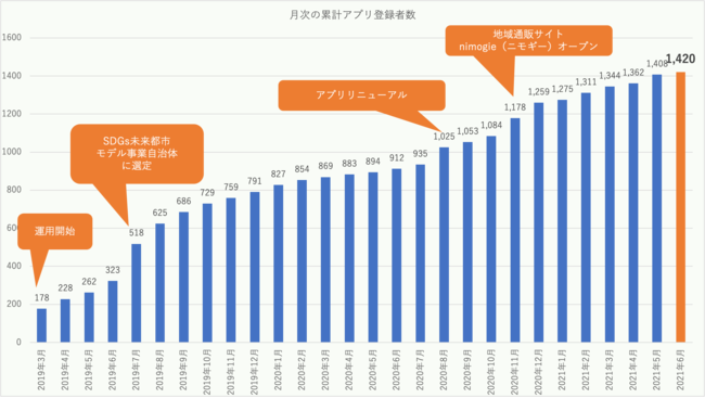 西粟倉村の関係人口アプリ『西粟倉アプリ村民票』の登録者が、2021年6月22日に1,420名に達し、アプリリリース以来のマイルストーンである村の人口を超えました。人口1,400人余りの小さな自治体で運営される関係人口ネットワークとしては異例の規模であり、2019年3月のリリースから2年4ヶ月間、地道に登録者の拡大に努め、村民規模に匹敵するネットワークを形成するに至りました。