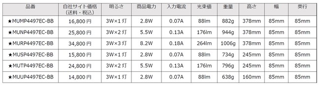 タイマーで明るさが変化する機能を追加し、従来サイズに加え、さらにコンパクトなサイズ展開によってバリ エーションを拡充しました。また、価格を改定し、よりお求めやすくなりました。(新商品モデルは、下記をご覧ください。)