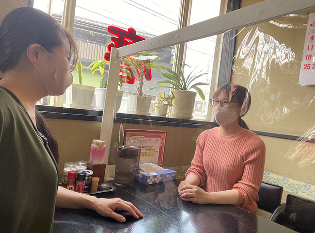 塩化ビニールはアクリル製よりも音の通りがよく、お客さま同士の会話がしやすいです。