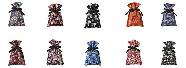 裏地が無地の商品には、色イメージに合わせた柄の巾着が付きます。