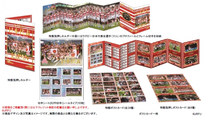 本商品はラクビー日本代表唯一の公式メモリアルフレーム切手セットです。ラグビー日本代表の熱き戦いの軌跡を追い、日本代表全選手(31人)のプロフィールも収納した、完全記念版プレミアムフレーム切手です。ファンの心に残る名場面の数々を、豪華箔押しホルダーに収めました。10枚の切手、8枚の特製箔押しポストカード、24枚の特製ポストカードが再びあの感動を蘇らせてくれるでしょう。