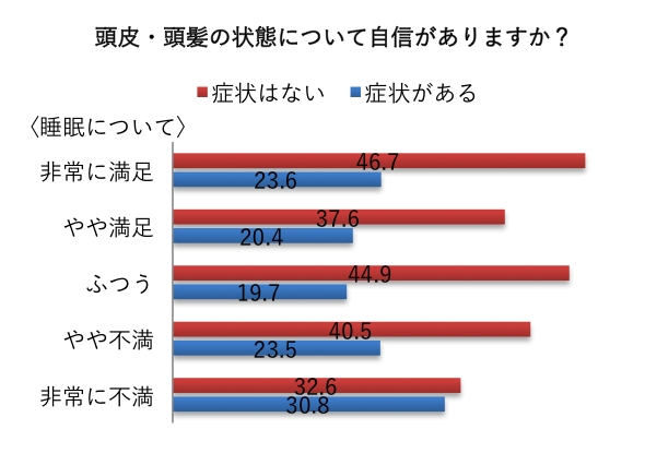 調査の結果、睡眠に非常に満足している人は、抜け毛の心配が少ないという結果となりました。