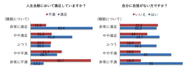 睡眠に非常に満足している人で、人生全般に「満足している」と回答した方は62.4%。