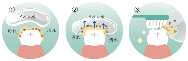 (※1)ブラッシングによる効果(※2)サピンヅストリホリアツス果実エキス、スイカズラ葉エキス、パパイン(清掃助剤)(※3)水(溶剤)×ミネラル塩(ph調整剤)