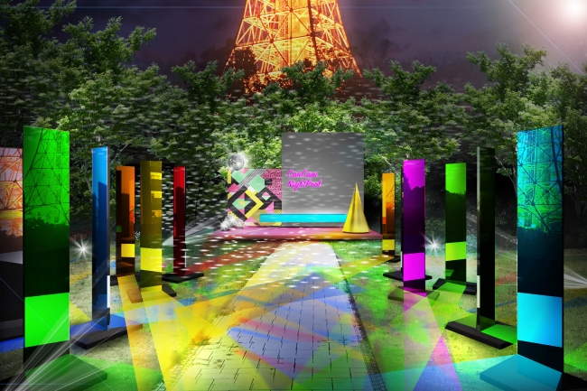 まるでおとぎ話の世界に迷い込んだかのようなネオンカラーの並木道を抜けると、ミラーボールが光るメインフォトスポットが登場。