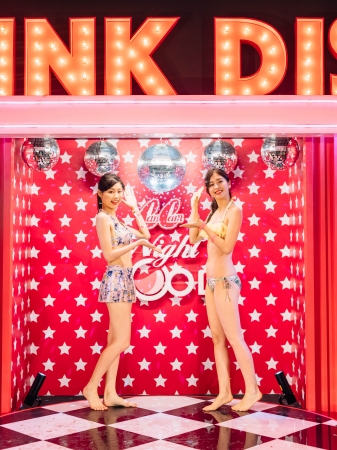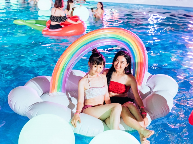 ファッション誌『CanCam』が空間プロデュースするナイトプールは、ライトアップされたかわいいオブジェやフロート(浮き輪)がたくさんのゆめかわ空間。水着を着たいけど日焼けしたくない女子たちにも人気になり、昨年は約2万人の来場者が訪れました。