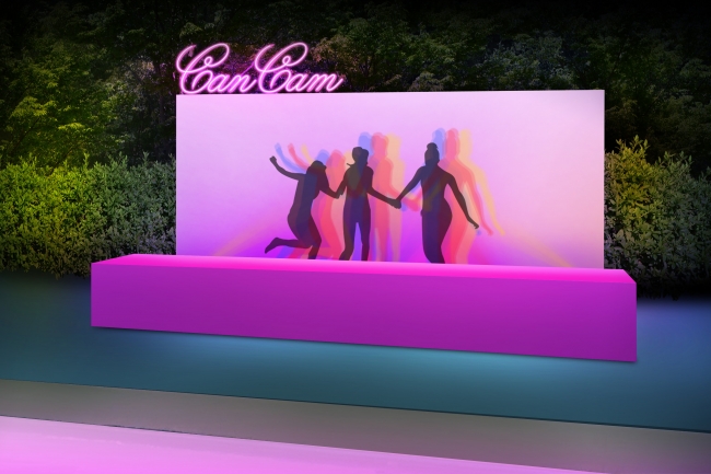 毎年定番、「CanCamナイトプール」ロゴのネオンサインが光るフォトスポット。周りの照明が打ち上げ花火のように様々に色を変えてライトアップされます。