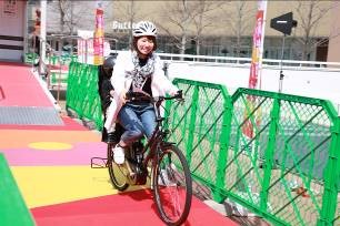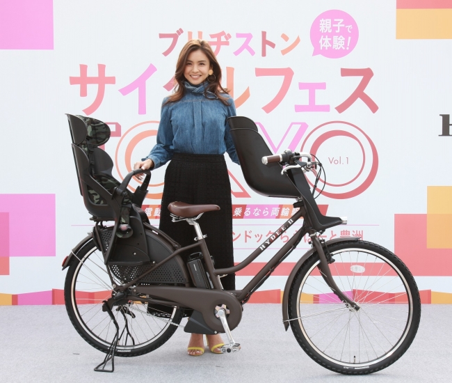 ブリヂストンの子乗せ電動アシスト自転車に約400名が試乗!人気モデル滝沢眞規子さんの自転車ファッショントークも大盛況