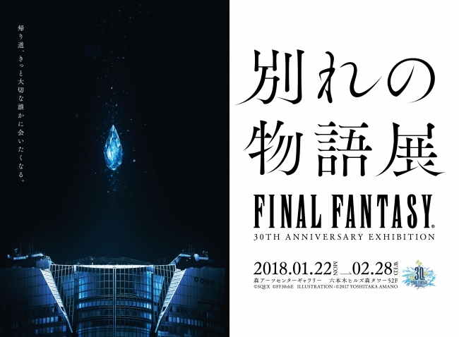 株式会社スクウェア・エニックス(所在地:東京都新宿区、代表取締役社長:松田 洋祐)は、全世界累計1億3,500万本以上の出荷・ダウンロード販売を誇るRPGシリーズ「ファイナルファンタジー」誕生30周年の集大成として、30年の歴史を別れをテーマに振り返る大規模回顧展『FINAL FANTASY 30th ANNIVERSARY EXHIBITION -別れの物語展- (以下、別れの物語展と記載)』を、2018年1月22日(月)〜2月28日(水)に六本木ヒルズ森タワー52階 森アーツセンターギャラリーで開催いたします。