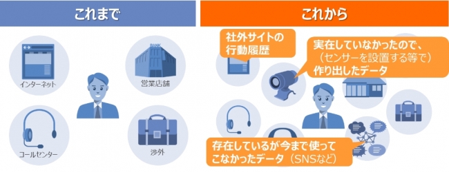 昨今、企業の業務改革や価値創造に対するAI活用の期待が高まりつつあり、膨大に蓄積されていくビッグデータを活用していくことが求められています。これまでは自社で得たデータのみを対象に分析を行っている企業が大半でしたが、これからはネット上の顧客行動履歴やSNSなどの社外データ、IoT技術で新しく獲得できるようになったデータなどを分析で活用し、高度な分析を行うことが必要になってきています。