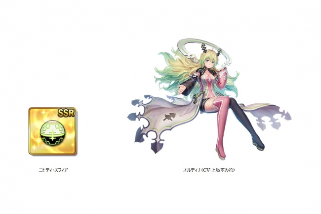 今回のタイアップを記念して、『オデスト』のゲーム内では「オルディナ」専用SSR武器「ニヒティ・スフィア」や、武器強化素材などのアイテムをプレゼントします。「ニヒティ・スフィア」は「オルディナ」に装備するとバースト技発動時に専用ボイスを聞く事ができる「オルディナ」専用武器です。「オルディナ」に装備して、「上坂すみれ」のボイスもお楽しみ下さい。