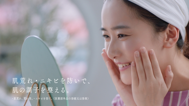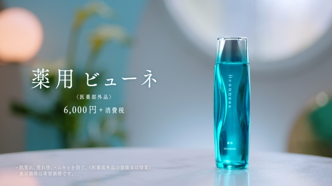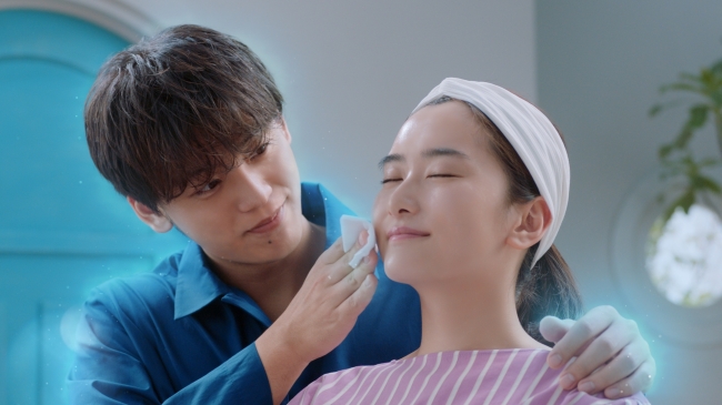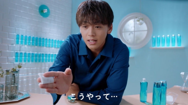 本CMでは、「薬用 ビューネ」の特長と世界観を表現。竹内涼真さん演じる「ビューネくん」が、訪れる女性の肌の悩みに真摯に向き合い、それぞれの悩みに対してアドバイスをしてくれるという内容になっています。ビューネくんが立つカウンターの奥にはビューネの商品ボトルが並び、光を浴びて青く輝きながら、優しく女性たちを受け入れてくれます。ビューネくんは、「聞いてよ、ビューネくん!」 と、ビューネくんがいる特別な場所の扉をたたく女性たちを優しい表情で迎え、もう肌荒れで悩みたくないという女性には「僕が守ります。」という台詞も。薬用 ビューネを使い、肌も心も前向きになった女性たちを「いってらっしゃい」と爽やかに見送ります。今までよりもっと女性の肌に寄り添い、前向きになるよう応援してくれるビューネくんに注目です。