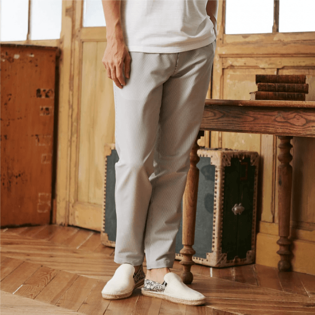 シワになりにくいイージー素材のジャケット・パンツは、吸汗速乾に富んだ機能素材〈エヴァレット〉を採用。麻素材に似たしなやかなタッチが特徴のセットアップは、通気性・ストレッチ性にも優れ、まるでスポーツウェアを着用したような快適な着心地。ウォッシャブルでお手入れも簡単です。