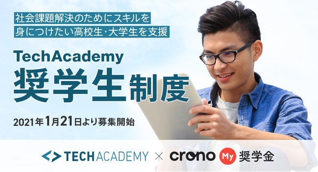 新型コロナウイルス感染拡大の影響を受け、企業の求める人材要件に変化があったり、生活様式の変化から新たな課題が生まれています。そのため、社会の課題解決に役立つスキルを身につけたいと考える学生が増えています。学習資金を必要としている若者と奨学金を提供する団体を繋げる「My奨学金」を運営するCronoとTechAcademyが手を組み、社会課題解決をしたいと考えている学生を対象に、「TechAcademy奨学生制度」を設けることにいたしました。