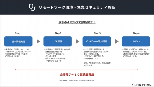 アスピレイション、新型コロナウイルス感染拡大による緊急事態宣言を受け、リモートワーク環境に特化した緊急セキュリティ診断サービスを提供開始