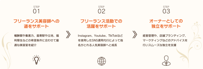 <リサロ 事業概要:美容室の紹介から、人気美容師への育成まで、一気通貫で行う次世代型エージェント>