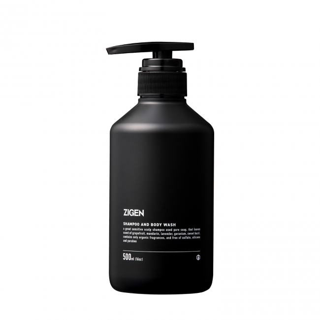 成分だけでなく、容器も環境に優しくなった「ZIGENシャンプー&ボディウォッシュ」は、黒を基調とした新たなデザインで4月9日(木)より発売を開始、石けんならではの心地よい使用感と、天然アロマ精油の香りで癒されるバスタイムを皆様に提供します。