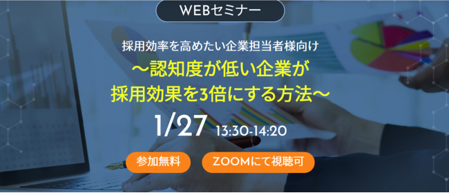 【WEBセミナー】コロナ禍のオンライン採用時代に完全対応!学生と会えなくても学生目線のコンテンツで採用効果を3倍にする方法!【1/27】