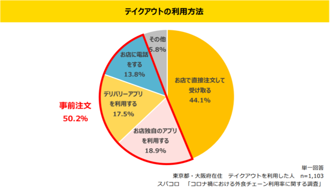 ■テイクアウト利用者の半数以上が事前注文。お店独自のアプリによる予約は約2割