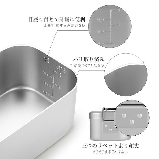 製品名:Hikenture メスティン アルミ飯盒 目盛り付き 登山 アウトドア炊飯 軽量 バリ取り済み キャンプ用品 調理器具 弁当箱 災害時用 半自動炊飯