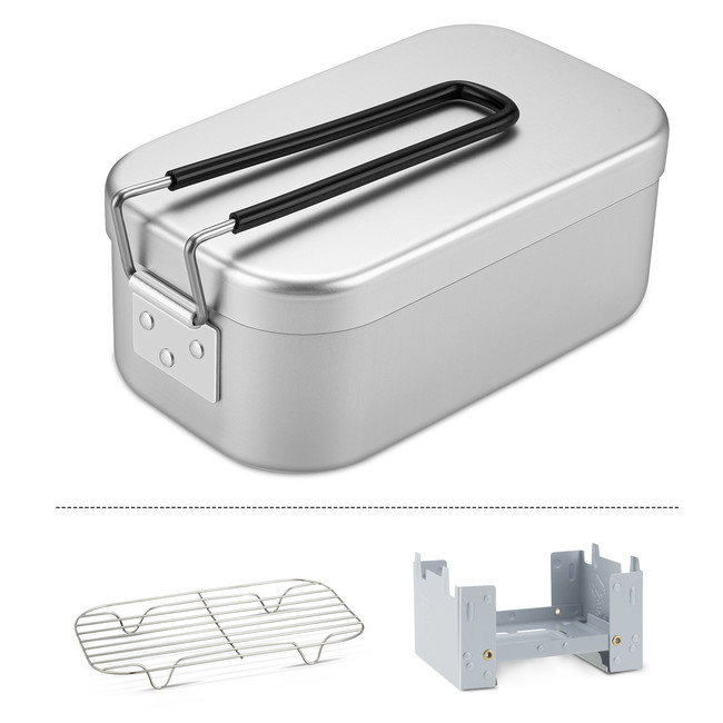 HIKENTURE 【お徳用】山ごはん三点セット「メスティン+専用のバットアミ+固形燃料ストーブ」キャンプ料理を楽しみにしましょう!