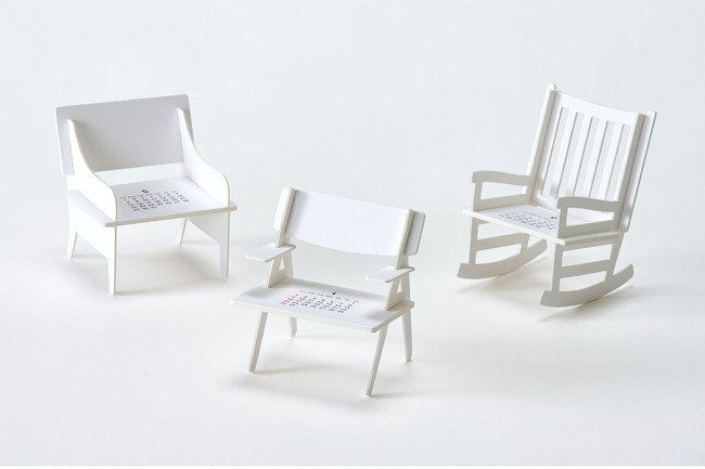 Chairsは、椅子をデザインモチーフにしたカレンダーです。3種類の椅子型カレンダーがセットされており、当月のカレンダーを座面に表示して使います。
