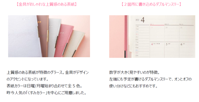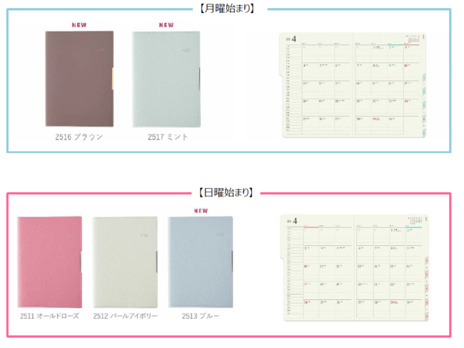 - グラースシリーズにビジネスでも使いやすい「月曜始まり」が仲間入り!日曜始まりにも新色登場!