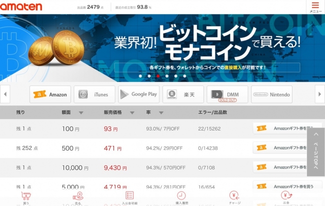 amaten独自のあんしん・安全な《決済システム》とビットコイン、モナコインの決済を採用しております。