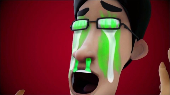 【ワサビ入りのお茶を飲んで鼻水を垂らすホンダ】 【ワサビを顔に塗り涙を流すスズキ】