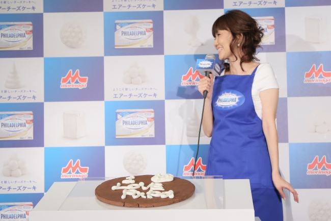 その後、料理にまつわる天然エピソードで有名なタレントの松本伊代さんが大ヒットソング「センチメンタルジャーニー」をエアー(口パク)で披露しながらゲストとして登場。井崎英典さんと一緒に、誰でも簡単に作れる「エアーチーズケーキ」作りに挑戦しました。料理の成功率が5割と、あまり料理が得意ではない松本伊代さんでしたが、ご自身で作った出来上がりに「こんなに簡単なんてびっくりしました!料理の味が中々安定しない私でもこれなら、毎回同じ味で作れちゃいます!」と手軽さ、そして美味しさに感動していました。