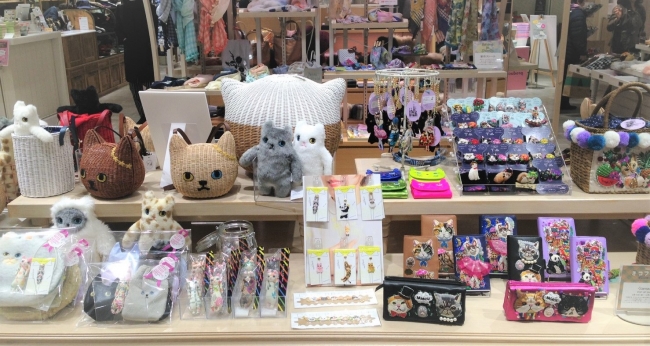 ねこ雑貨まみれの店内には、様々なクリエイター雑貨や食品が多数。