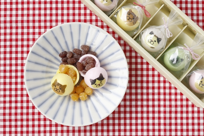 新作のお菓子 ころころねこてまり(おまめいり)1,300円+税