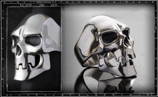 スムーズな曲面により構成されるスカルは、下顎が開閉式のユニークなデザインです。