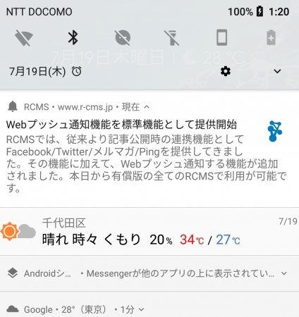 下記のようなWebプッシュが送信されます。(Androidでの受信サンプル)