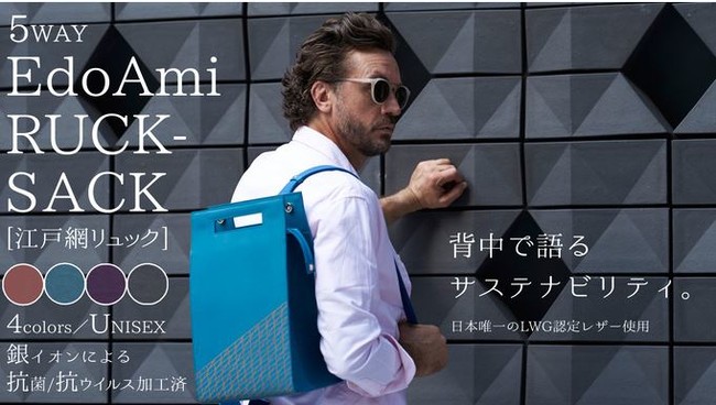 ●タイトル:日本唯一の国際基準サスティナブルレザー使用の5WAY「EdoAmi-RUCK」
