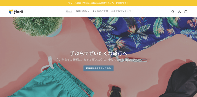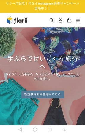 「flarii」は、旅行先で利活用したい・必要となる用品・商品を専用ウェブサイト<https://flarii.com/>から選択、レンタルし、旅行先まで配送、使用終了後は旅行先から配送返却することができる新しい旅行者向け用品・商品レンタルのウェブサービスです。