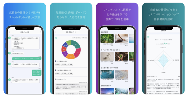 - 対話するようにチャットボットに感情やコンディションを記録。自分の感情や状態を見える化