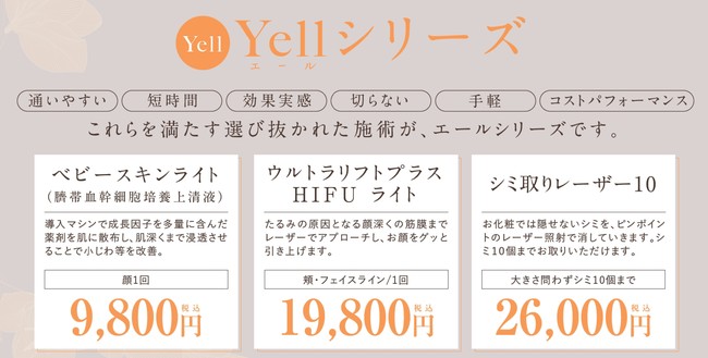 中高年女性のエイジングケアを応援する新メニュー「Yell(エール)シリーズ」を開始