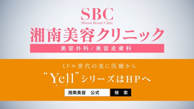 全国展開する美容クリニック「湘南美容クリニック」(運営:SBCメディカルグループ、グループ代表:相川佳之、東京都新宿区)は、40歳以上の中高年女性のエイジングケアを応援する新しい施術メニュー「Yell(エール)シリーズ」を10月19日に始めました。美容医療に対するネガティブなイメージを払しょくし、手軽に体験できるようにしました。相川代表がYellシリーズ導入への思いを語る新しいテレビCMを10月24日から関東、関西地区で放映します。