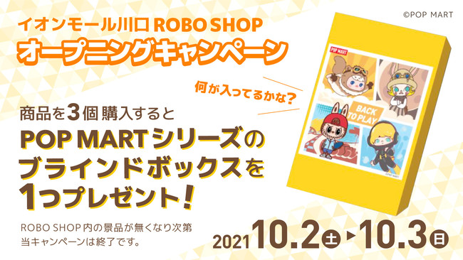 「POP MART ポップアップストア 渋谷パルコ店」が5Fの東側エスカレーター前に移転して10月1日(金)にリニューアルオープン!翌日の2日(土)からは、渋谷スクランブル交差点の「MAGNET by SHIBUYA109」1Fに新規オープン!同じく2日(土)、自動販売機のROBO SHOPが「イオンモール川口」に登場!オープニングキャンペーンとして、3個購入するとPOP MARTシリーズのブラインドボックスが1個もらえるキャンペーンを実施いたします。