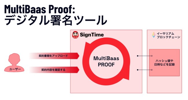 電子契約サービス「SignTime(サインタイム、URL:https://site.signtime.com/)」を開発・運営するサインタイム株式会社(本社:東京渋谷区 代表取締役:ジム・ワイザー)は、ブロックチェーンミドルウェアを提供しているCurvegrid株式会社(代表取締役:ジェフ・ウェントワース)のソフトウェア「MultiBaas」を使い、エンタープライズ向けにブロックチェーン技術を活用した機能を提供します。これにより、これまで以上にセキュアな契約締結が実現します。